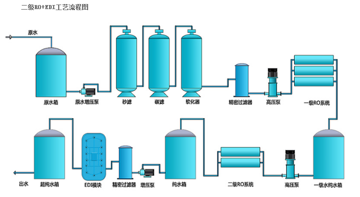 2、運用雙極反滲透工藝,脫鹽率高,出水水質穩定,性能可靠,較大程度確保系統穩定運行。